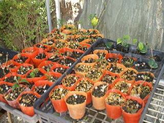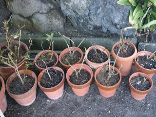 昨年挿し芽をして冬越ししたポット苗を鉢にとりました。20ほどできました。すでに冬越ししたものが20鉢程度あるので、かなりたくさんになりました。これが6月はじめには花がつくので、それをまた挿し芽したいと思っています。転勤した職場に温室があったので、今年はそこで少し増やそうと思います。職場の皆さんで興味があれば差し上げたいと思っています。