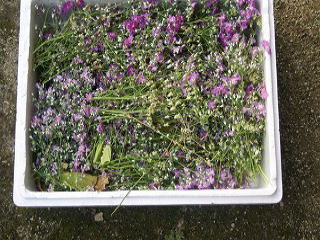 すでに職場で注文(といっても無料ですが)が4ケース程度ありました。Kさんに1、Mさんに1、親戚のY家に2、T家に1、もちろん自宅に3。これで今までの保管分ですが、職場の花壇にも少し植えたいので5ケースくらい必要でしょうか。やっぱり20ケースは取らないといけません。趣味でやっているからこそできるのですが、販売になったら責任問題で大変だと思います。