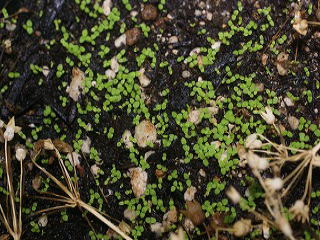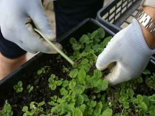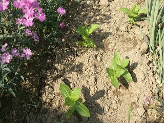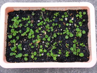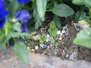 二つの種が発芽しました。順調です。ほおっておくとアオムシや同類の虫に食べられてしまいます。とりあえず、葉ボタンの生長が早いのでオルトランをまきました。しばらくして桜草の生長具合を見てオルトランをまく予定です。