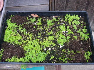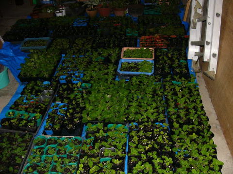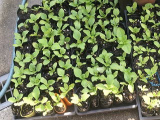 サルビアの種まきは失敗でした。キンレンカはOKでしたが、温室の入り口を開けておいたら猫に荒らされ、残った金蓮花の苗は7ポットでした。