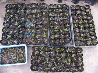 サクラソウのポット取りを始めました。とりあえず、3ケース分をポットに取りましたが、まだまだたくさん取れます。自宅用に3ケースあればOKですので、あとは親戚や知り合い、職場に持って行く予定です。朝晩の気温が低いことと、湿度が低いのでほとんどがうまく成長してくれます。すでにこぼれ種の成長した物もありますが、大抵は溶けたり、虫に食われたりします。