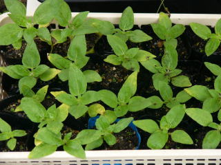 順調に生長している苗は、ヒャクニチソウ、マリーゴールド、コスモス、チョウマメ、ゴシキトウガラシ、エンゼルトランペット、アスクレピアス、ケイトウあたりです。6月の最終週末あたりには知り合いに配れそうです。