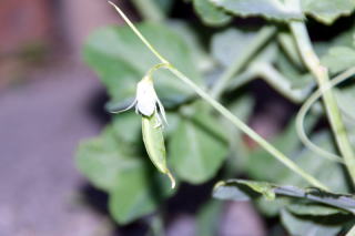 エンドウでした。花の色がすべて白だったので、おかしいなと思っていたらエンドウ豆のさやがちらほら