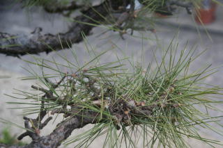 松の木が面倒です。一枝一枝をはさみで切っていきますが、時間がかかります。三日かけて1本ずつ