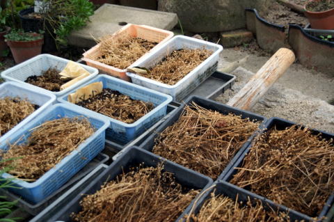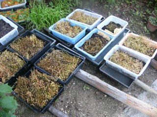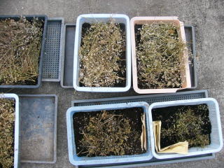 サクラソウはいつも600−800ポットくらい取るのですが、今年は台風12号でよい苗のケースがすべてひっくり返ってしまいました。職場にある苗を少しもらいながら、500ポットを目指して行きたいと思います。キンモクセイの根元からフユシラズの自生え苗がたくさん出てきました。100ポットとれそうです。