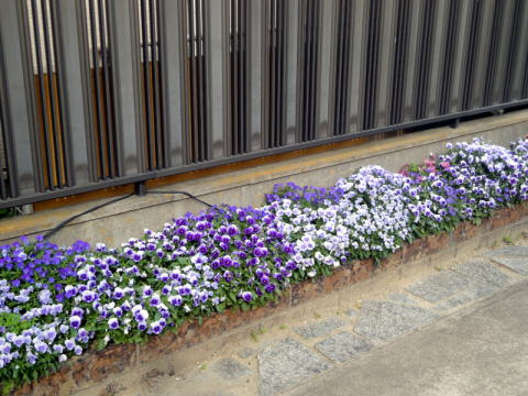 パンジーの成長が遅かったため、例年では土の部分が見えなくなるところ今年は空間が目に付きます