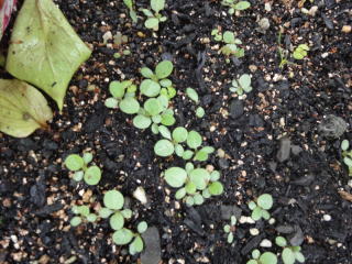 古い鉢の土を空けたり、草取りをしたり、地生えの苗や蒔いた苗のポット取りをしました。庭が美しくなりました。