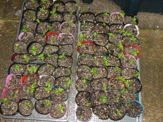 サクラソウのポット取りがほぼ完成しました。12ケースですが、残念ながら4ケースは心配な苗です。まともなのは8ケースしかとれていないので、今までの予定より1/2から1/3程度になってしまいます。いつも差し上げている人にはできるだけ差し上げたいとは思いますが、やや少なめになります。何とか来週くらいから配り始められると思います。小苗が早く大きくなってほしいものです。