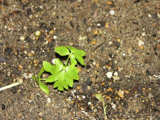 ありがたいことにアゲラタムとメランポジウムがこぼれ種から出てくることです。今年はやや遅いので、