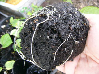 また、挿し芽のゲンペイカズラもポット取りしたら、よく成長し、根が張ってきました。このまま行けば1週間後には鉢に植え替えができそうです。
