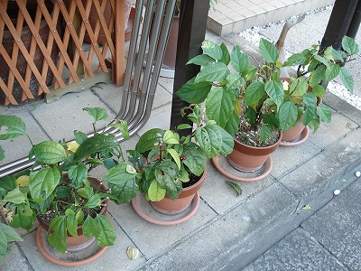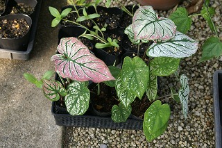 そのほかには、挿し芽をしておいたゲンペイカズラが98%つきましたので早速植え替えをしました。春先には枯れてしまったと思っていたゲンペイもいくつか芽を出し、さらに挿し芽ができるようになったことを喜んでいます。今年の秋には少しお金をかけて温室を買おうと思います。また、ゲンペイの別品種も挿し芽をしました。赤と白の色がしっかりしている種類です。これがうまくつくと最高の喜びです。柿の木の下で優しく管理をしています。