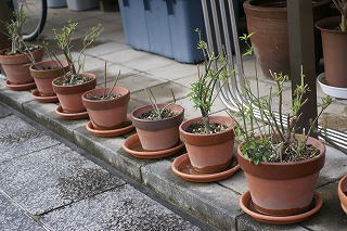 先週蒔けなかったコリウスと、ブルーサルビアの種まきをしました。ゲンペイカズラの新芽もかなり出てきましたので、鉢に植え替えてやりました。古いゲンペイカズラの鉢にはカタバミが多く生えていましたので、除草剤の濃いめのものを作り、ペンキの刷毛で塗ってやりました。ゲンペイカズラに影響が出ないかが心配ですが、うまく根を取ることができなかったから対応です。