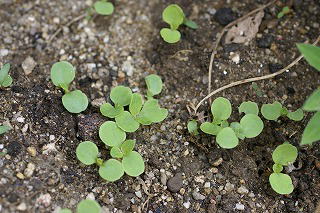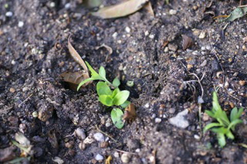 キンモクセイ下のフユシラズが終わりになりました。すべてとってしまい、その後になでしこの苗を植えておきました。また、サクラソウのプランターもすべて移動して、代わりにゲンペイカズラを置きました。フウセンカズラを職場で使うので、2週間前に種を蒔いておきました。たくさん芽を出していると楽しみにしていましたが、残念ながらそうはいきません。すべて芽が出るとは限らないようでした。