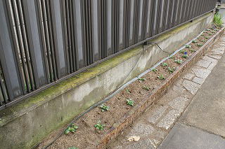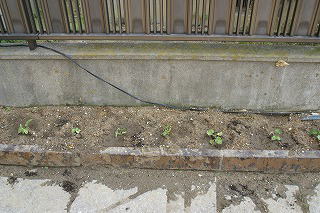 最南端の花壇には時々犬が便をしていきます。野犬はいないので、飼い犬だと思います。心許ない飼い主がいるということです。そこで、アイビーのヘデラを植えることにしました。198円の苗を3本買い、以前買っておいた鉄製の柵を設置して完成です。早く成長してほしいと願っています。
