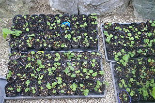 8月に蒔いたサクラソウをポット取りしました。まだ少し小型ですが、2週続けて時間がないので、とりあえずやってみました。実生の1次苗と合わせて8箱くらいになりました。320ポットでしょうか。これだけあっても近所、親戚、職場へ持って行けばあっという間に裁けると思います。また、葉ボタンの苗を近所の方に差し上げたら、お返しに「冬知らず」をいただきました。冬に花のない時によく咲くようです。とりあえずポット取りし50程度できました。ちょっと水揚げが弱いようです。
